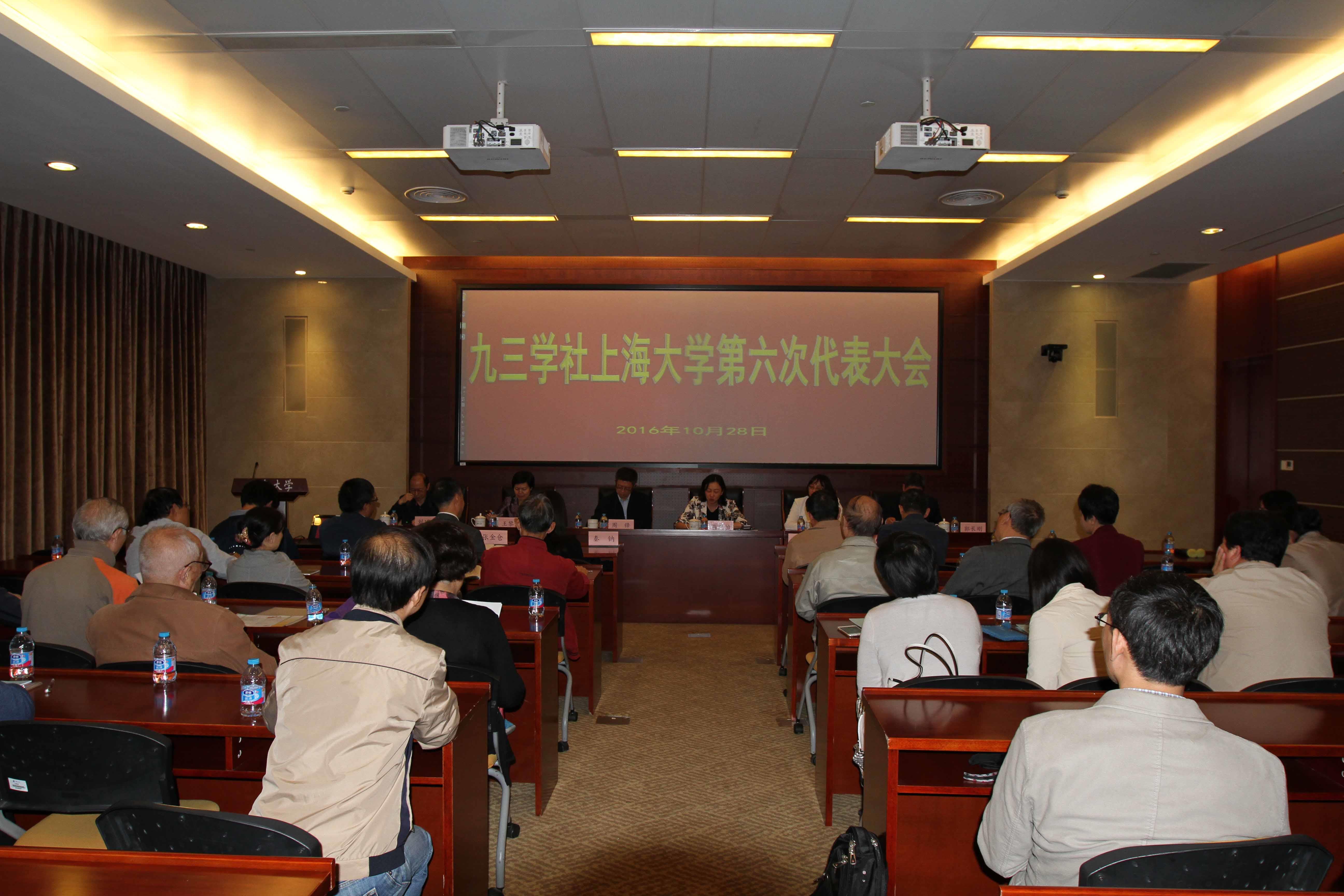 10月28日下午,九三学社上海大学第六次代表大会在宝山校区乐乎新楼2号楼思源厅顺利召开。九三学社上海市委专职副主委周锋,校党委副书记、副校长龚思怡,九三学社上海市委副秘书长、组织部部长王黎云,校党委统战部常务副部长吴国琴等领导出席,九三学社上大委员会社员代表近50人参加会议。