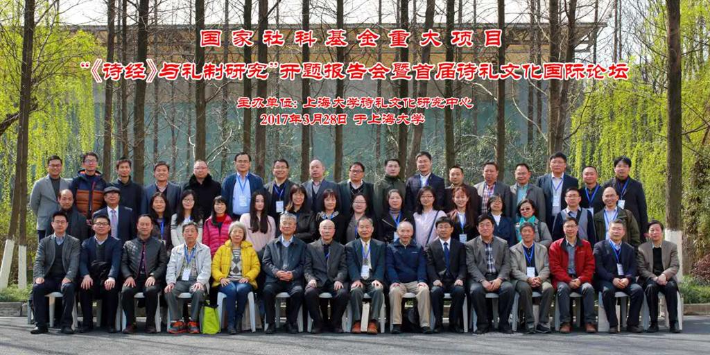 3月27-29日,由上海大学文学院邵炳军教授领衔的2016年度国家社科基金重大项目“《诗经》与礼制研究”开题论证报告会暨“首届诗礼文化国际论坛”在上海大学乐乎新楼思源厅隆重举行。上海市哲学社会科学规划办领导及上海大学党委常委、副校长欧阳华,上海大学文科处处长董丽敏,上海大学文学院院长张勇安以及开题论证指导专家南开大学陈洪教授、北京语言大学韩经太教授、华东师范大学谭帆教授、中山大学吴承学教授、安徽大学丁放教授以及学术委员会顾问代表复旦大学蒋凡教授、台湾中正大学庄雅州教授、上海大学文学院董乃斌教授,兼职教授代表南京师范大学王鄂教授,以及项目总负责人邵炳军教授及子项目负责人清华大学马银琴教授、郑州大学罗家湘教授、中国人民大学徐正英教授、上海大学宁镇疆教授、上海大学朱承教授,陕西师范大学张懋镕教授、周口师范学院唐旭东,来自韩国、台湾等地的海内外专家学者出席会议,文学院饶龙隼、尹楚兵、姚蓉教授等专家学者出席会议。