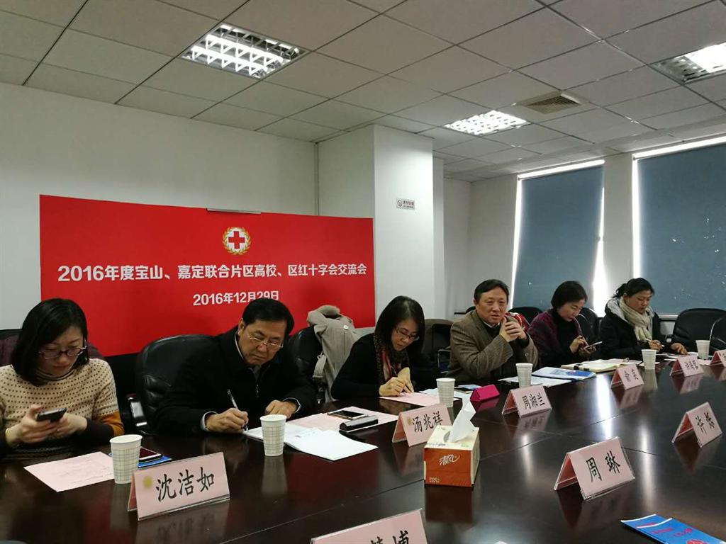 12月29日上午,2016年度宝山、嘉定联合片区高校、区红十字会交流会在上海大学宝山校区A404举行。市红十字会青少年工作部部长周湘兰、副部长汤兆祥、宝山区红十字会副会长俞奕、嘉定区红十字会秘书长许海蓉、市红十字会青少年工作部沈洁如、宝山区红十字会汤忆华、上海大学红十字会秘书长、校团委书记许烁以及各区、高校红十字会负责同志出席会议。会议由上海大学红十字会副秘书长、校团委副书记沈青松主持。