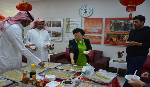 在禁忌颇多的阿拉伯国家,孔院全体员工为了找到合适的影片和片源,准备了两月之久,最后选定了既能反映中国当代风貌,又不违反当地习俗的10部影片。开幕式上,孔院特意选择了既生动又富有中国文化内涵的纪录片《鸟瞰中国》介绍给师生们。这部纪录片,从宏观视角纵览中国大江南北,讲述生动的社会人文地理风貌,展现了一个壮丽多姿的美丽中国。同时,在观影前后,孔院还为参加电影节的师生提供了中国传统美食,师生互动,其乐融融,大家一边分享美食一边讨论影片。此次电影节将持续一个月,孔院还将不定期播放一系列中国纪录片及电影,以飨观众。
