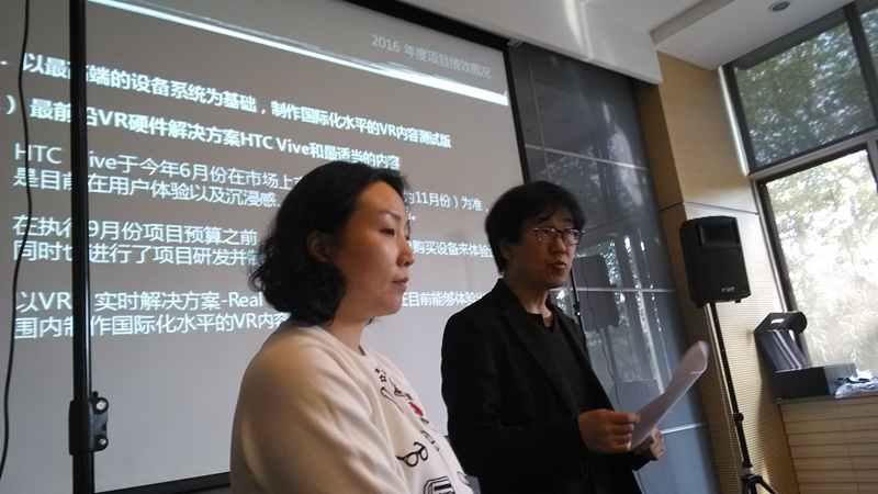 在评审环节,现场与会的专家评委对本项目在项目实施内容以及在人才培养方面的所做的贡献给予了高度的肯定,并对项目团队成员的创作作品给予了高度评价,肯定了近一年来项目团队成员热情而积极的努力付出所换来的成果,同时,各领域评审专家都积极赞赏本项目的跨国合作模式,并鼓励涵盖高新多媒体交互技术的内容策划创新模式,大家一致表示将继续支持2017年度项目的继续开展。