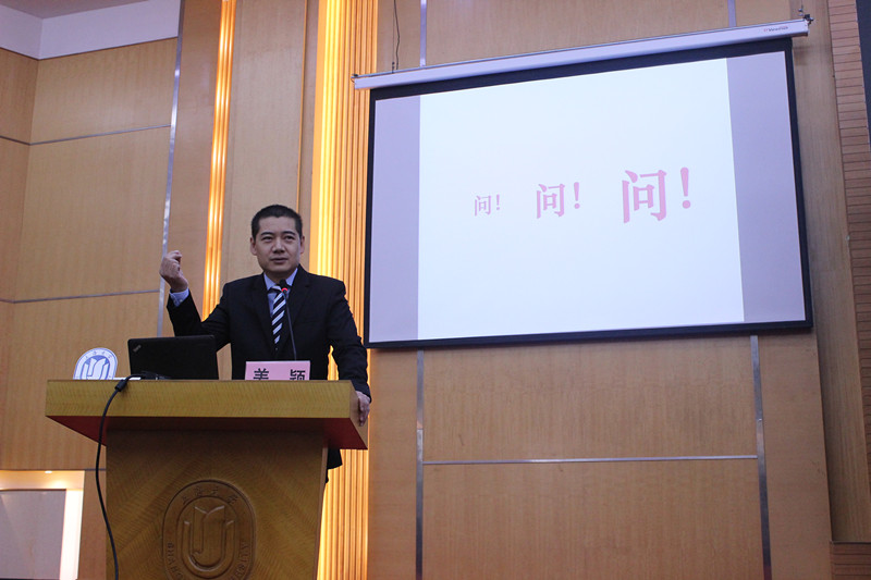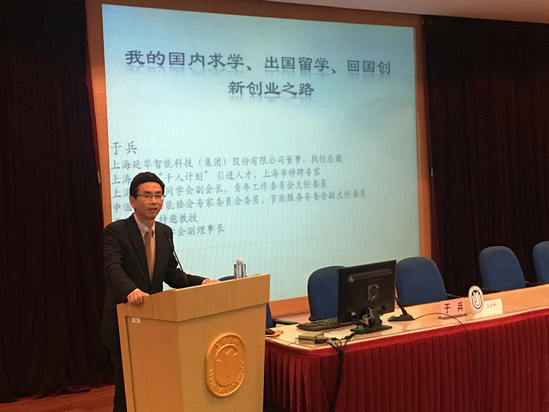 上海延华智能科技(集团)股份有限公司执行总裁、东方延华节能技术服务股份有限公司总经理于兵为同学们带来了“我的创新创业之路”专题讲座,他鼓励同学们要勤奋读书,认真做事,从一个个小目标开始,逐渐靠近大目标。
