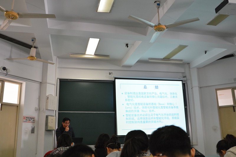 上海大学教授、博士生导师,上海电机与控制工程研究所所长徐国卿教授在“智能装备与系统——谈机电装备电气化、信息化与智能化”专题讲座中,勉励同学们应该培养自学能力、自信心、逻辑思维能力和判断力,通过自身所学的数学、物理等方面知识来解决新的问题。