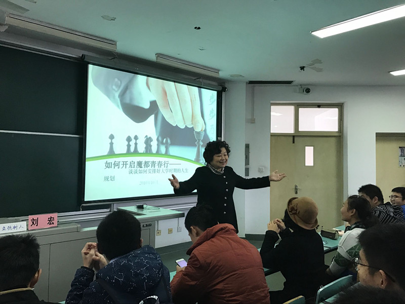 曾任上海房地产经营集团有限公司党委副书记、监事长的刘宏老师为同学们带来了“如何开启魔都青春行”专题讲座,她通过分享身边许多杰出的同学、朋友的真实案例,向同学们讲述了大学中刻苦学习的重要性。
