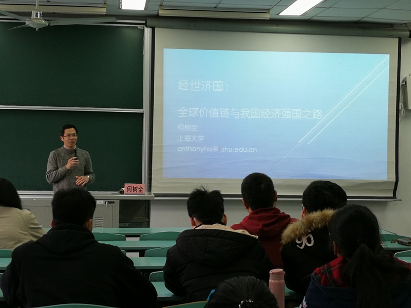 经济学院何树全教授为经管大类的同学带来了“经世济国:全球价值链与我国经济强国之路”专题讲座,希望同学们能够从全球角度去发现经济发展的趋势,深刻理解国家在世界经济舞台中所扮演的重要角色,并通过自身努力来实现转型过程中的价值升级。