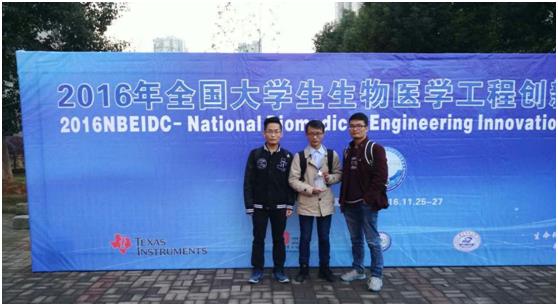 2016年11月27日,第二届全国大学生生物医学工程创新设计竞赛全国总决赛在武汉华中科技大学落下帷幕,由我校本科生周虎成(生物医学工程专业)、裴永胜(通信工程专业)、潘洋(计算机工程专业)组成,通信学院生物医学工程专业蒋皆恢博士作为指导教师的极意团队从60组参加全国总决赛的队伍中脱颖而出,最终斩获全国二等奖。