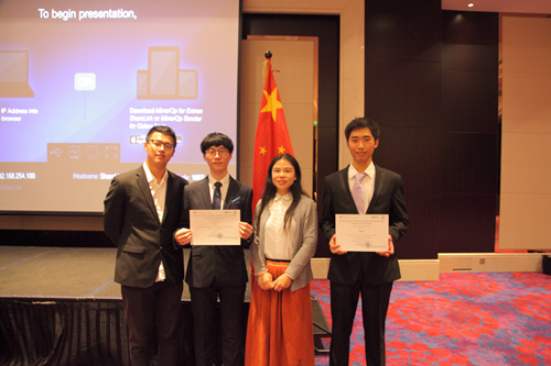 在现场展示环节,上海大学环境与化学工程学院本科生马铎介绍了一种由藻类和菌渣混合而成的有机肥料。该有机肥料以水华暴发时产生的有害藻类和食用菌养殖中产生的废弃菌渣为原料,借助菌渣中残留的微生物群落,有效降低肥料中的藻毒素成分并显著提高肥料效率。该项目即保护了环境,同时实现了对环境废弃物和水华藻类的有效利用,受到了评委嘉宾的一致好评。来自我校土木工程系的谢其君同学展示了一种新颖的非承重墙体结构,该墙体相比普通的砖墙,具有环境友好、加工方便、经济实惠、绿色美观的优点。另外,来自上海外国语大学附属中学的6位高中生,通过多种方式向在场观众介绍了对于回收废旧电池的想法以及设计装置。在场的观众被他们详实的社会调查,精巧的仪器以及认真地态度所感动。最后,委内瑞拉驻上海总领事莱斯贝斯•贝里奥斯女士为获奖者颁奖,并希望这次入选的方案不仅仅存在纸上,而是能在生活中发挥作用。