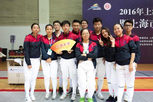 10月22日、23日,2016年上海市学生运动会暨上海市大学生击剑锦标赛在上海立信会计金融学院举办。赛事由上海市教育委员会、上海市体育局主办,上海市学生体育协会联合秘书处、上海市学生活动管理中心和上海立信会计金融学院承办。此次比赛共有12所高校,共160名在校大学生参加了花剑、佩剑、重剑三个剑种的个人赛、团体赛角逐。我校击剑社团队员在体育学院徐漫云和周珏两位老师的带领指导下,发扬校训精神,自强不息,顽强拼搏,获得男子重剑团体第四名,女子重剑团体第四名,男子花剑团体第五名,女子花剑团体第五名的好成绩,体现了上海大学学生的优秀素质和精神风貌。