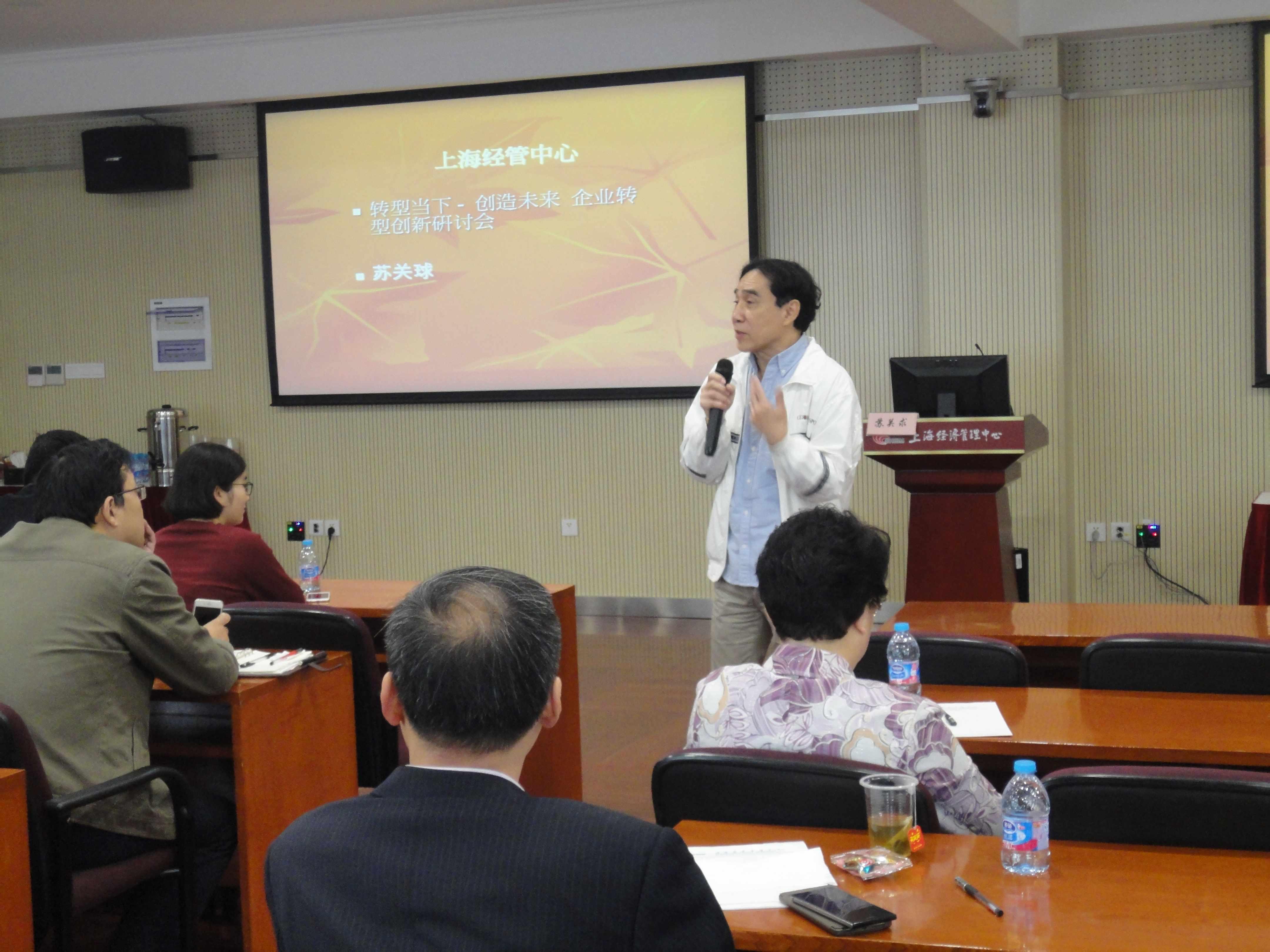 2016年11月19日上午9时30分,由上海大学上海经济管理中心和上海总工程师协会联合举办的2016年第三期“上经论坛”在延长校区科技楼817室如期举行。本次论坛的主题为“转型当下开创未来,企业转型的创新途径”,上海经济管理中心副主任,香港浸会大学教授、香港大学潘锦溪商业研究学院首席顾问、香港瑞安集团顾问苏关求先生担任本次论坛的主讲人,三十余位来自上海各界的企业家出席本次论坛。