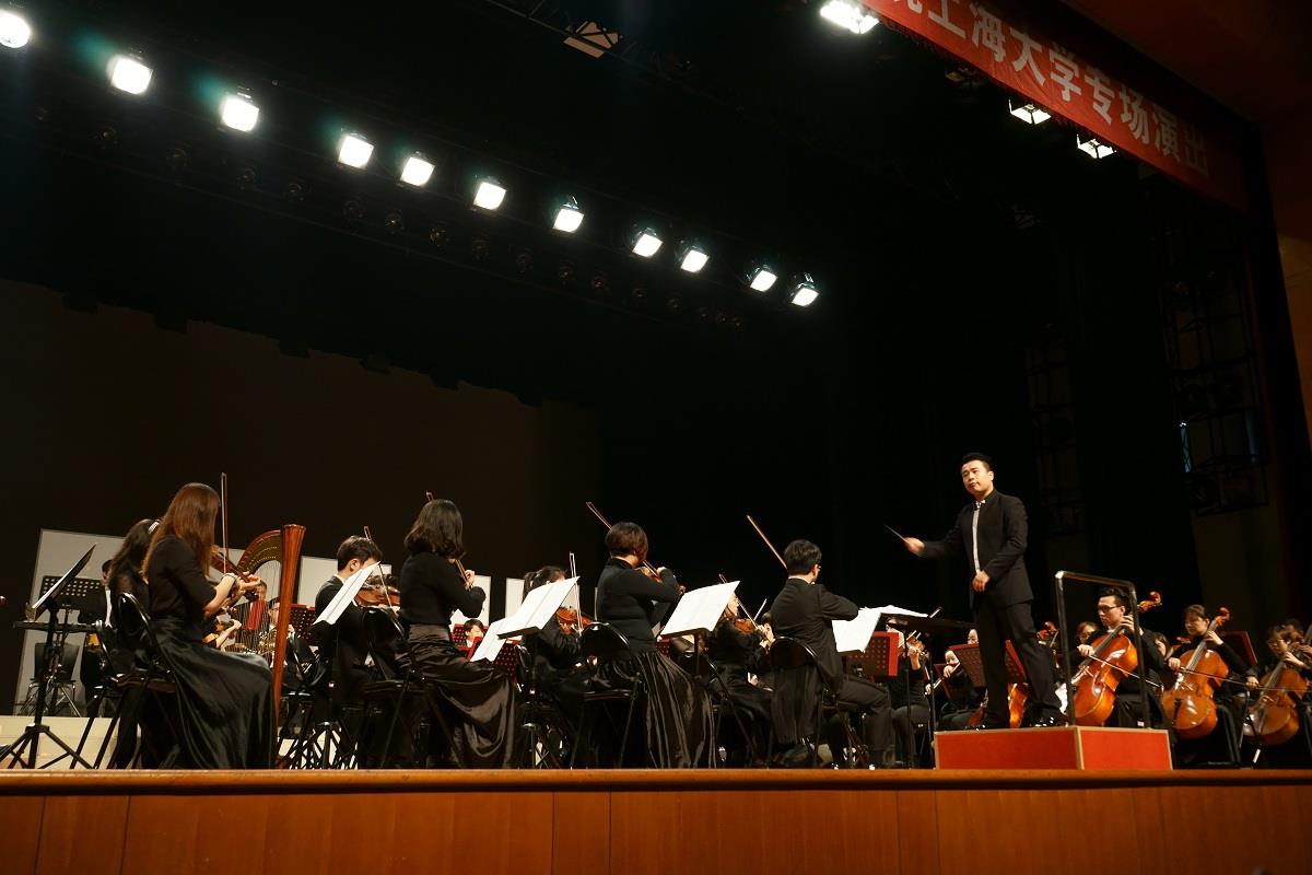 歌唱家王立民以诙谐幽默的主持风格活跃了全场气氛,结合现场的演出,为现场观众讲解了一些关于歌剧的基本知识。青年指挥家周小诗与中央歌剧院合作出演了歌剧《卡门》选曲,热情奔放的音乐很快让在座观众投入其中。紧随其后出场的是歌唱家王红,她生动的演绎了卡门的咏叹调《爱情像一只自由鸟》,为大家呈现了吉普赛姑娘卡门遇上心上人后用自己女性魅力使对方陷入情网的生动画面。随后,在四位歌唱家:李晶晶,金久湝,徐森,耿哲的默契配合下,演唱了四重唱《爱之骄子》,他们用歌剧的方式为大家演绎了完整的故事,使在场观众无不为他们的精彩表演所感动,霎时全场掌声雷动!接着上场的是歌唱家李爽,他为上海大学的师生们再一次呈现了其在瑞士获得精彩好评的作品卡拉夫的咏叹调《今夜无人入睡》,精湛的演唱使在座观众喝彩连连。歌剧《茶花女》中,歌唱家王立民随机邀请了我院新生上场,他俩的即兴表演让现场一片欢声笑语。演出的最后,在观众的热烈掌声、尖叫、喝彩下,指挥家周小诗返场携中央歌剧院交响乐团演奏了《拉德斯基进行曲》,熟悉的音乐响起,观众也十分默契按照节奏拍手助阵。