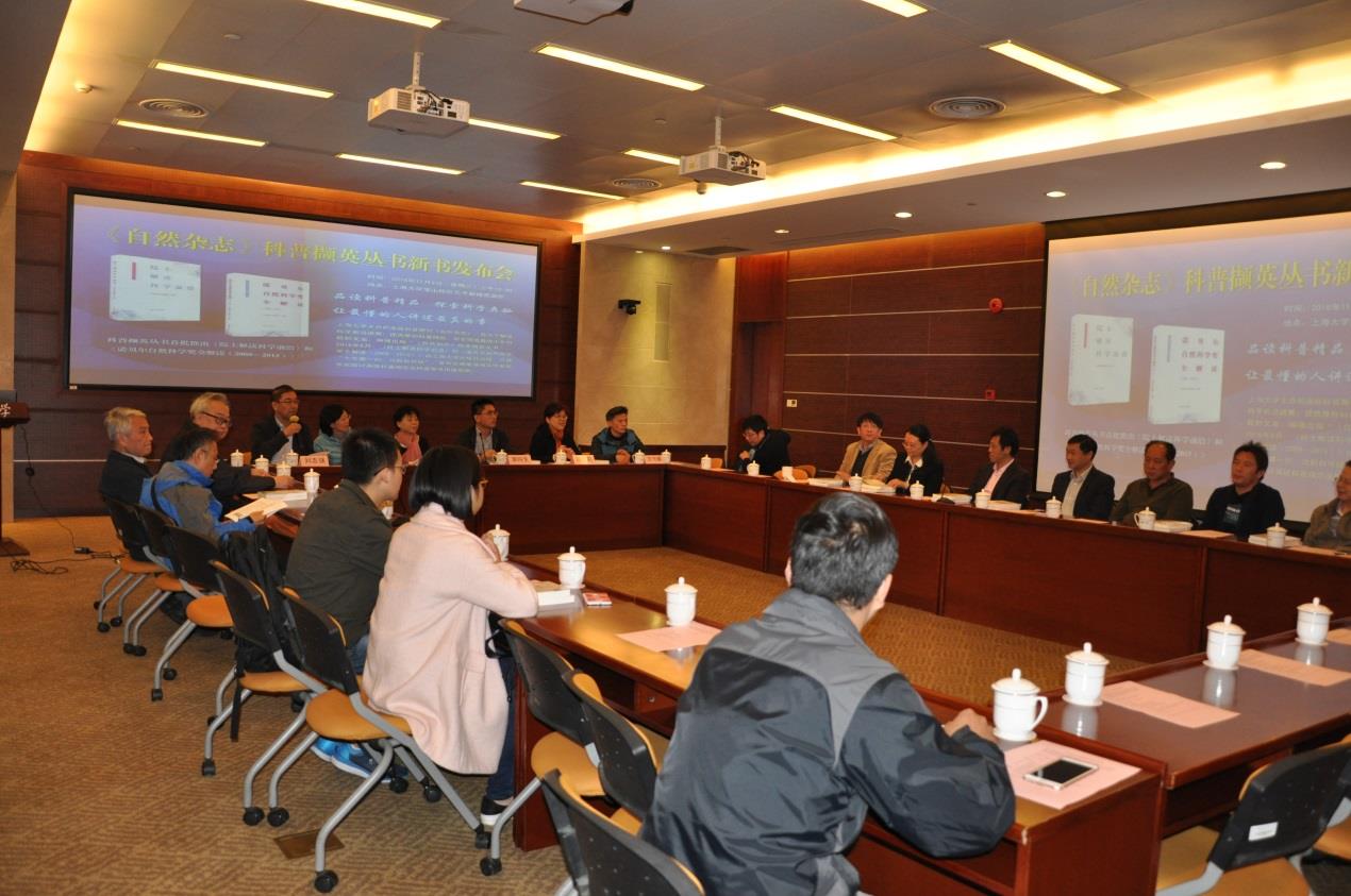 金秋时节,秋风飒飒,秋菊满园,校园里清爽宜人。2016年11月2日上午10:00,在上海大学宝山校区乐乎新楼思源厅,《自然杂志》的编委、作者与相关专家,上海大学图书馆的领导,上海大学出版社和期刊社的领导和编辑们齐聚一堂,共同庆贺《自然杂志》科普撷英丛书出版,并对高级科普的办刊理念和科普图书的出版思路予以探讨。