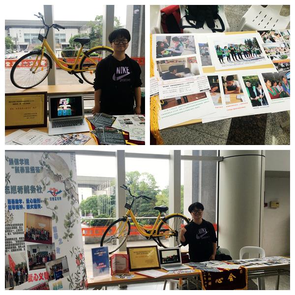 在展示中,蓝纽带向大家展示了其历年来所获的荣誉奖项,介绍了蓝纽带社团特色和义教、禁毒等志愿者项目。蓝纽带社团引进的ofo自行车在运行四五个月来,得到了全校师生的好评。本次展示中,蓝纽带社团也放置了一辆小黄车,吸引了许多目光。学校党委副书记、副校长徐旭、企业代表以及外国友人都来到蓝纽带的展台前,表示了对小黄车公益项目的赞许和支持。期间,蓝纽带与慈善爱心屋等其它义工队进行了友好的交流学习。而在此次音乐会中,不仅有上海大学音乐学院的演出,更有著名指挥家曹鹏所带领的天使知音音乐沙龙的自闭症儿童的表演,让此次活动更显温馨与感动。