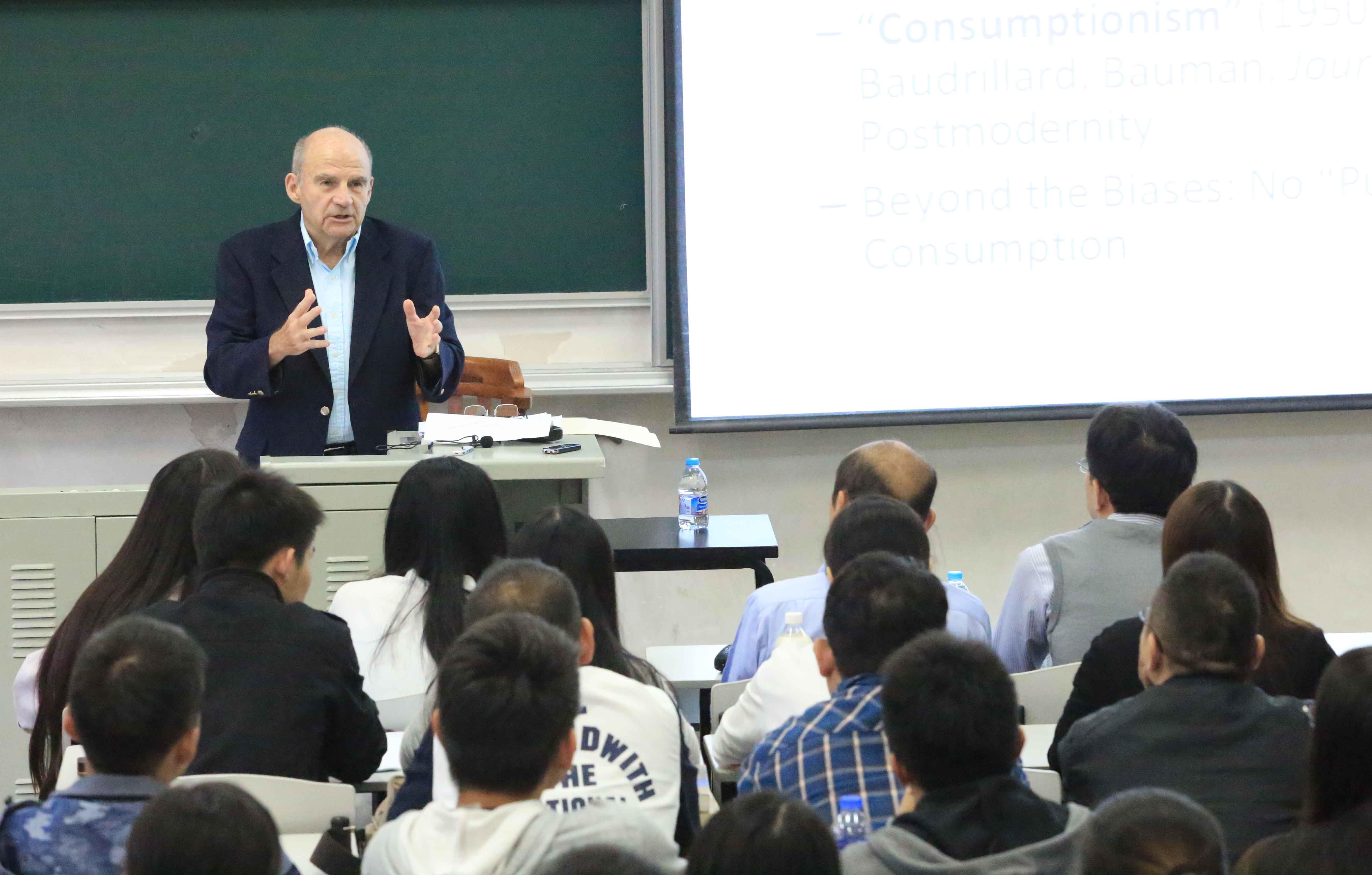 2016年10月27日上午10点,上海大学2016“国际大师讲坛”系列讲座之(十八)在宝山校区BJ103正式开讲,来自美国马里兰大学的著名社会学家George Ritzer教授为上大师生带来了一场题为“Prosumption: Evolution, Revolution, or Eternal Return of the Same”的精彩报告。本次讲座由国际事务处主办,社会学院承办,来自校内外逾百名师生参加了论坛。