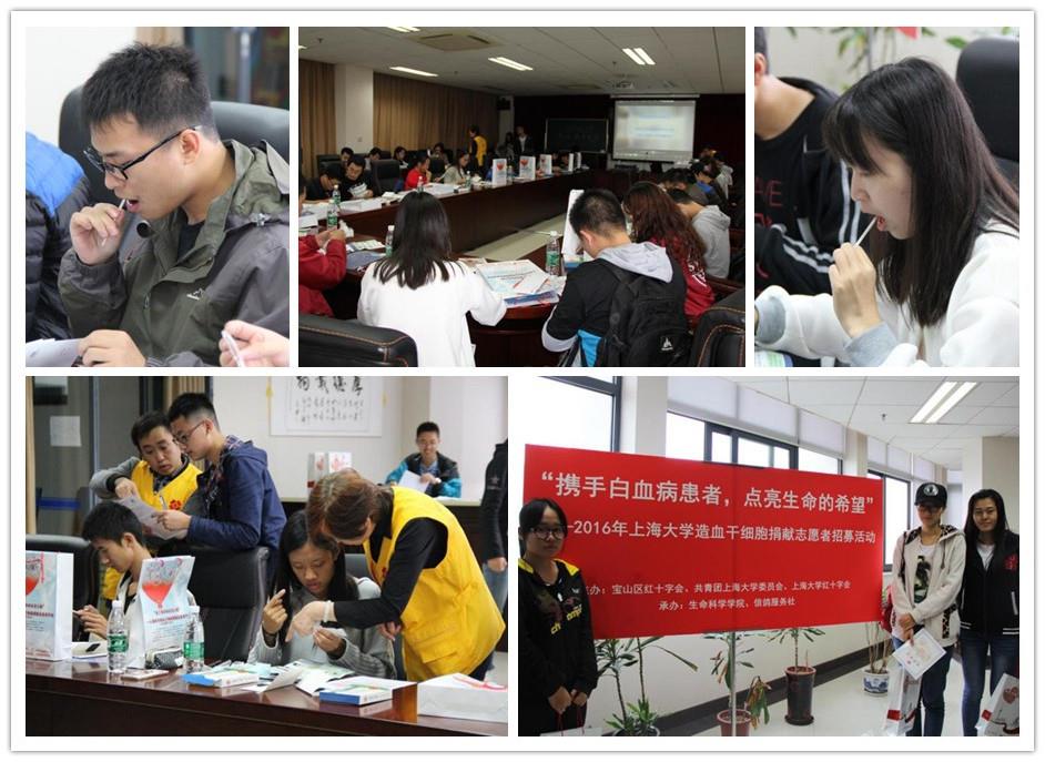 2016年10月28日,上午9点,上海大学生命学院团委下属信鸽服务社,于东区生命学院大楼800室举行了2016年造血干细胞捐赠志愿者采样入库活动。此次入库由宝山区红十字会、校团委、校红十字会主办、生命学院与信鸽服务社承办。