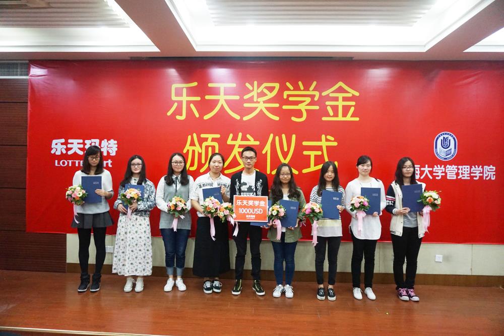 2016年韩国乐天奖学财团向上海大学教育发展基金会捐资10000美元,定向用于在管理学院设立乐天奖学金,旨在促进教育事业的发展,培养高素质人才,奖励优秀大学生,支持他们实现理想。今年已经是乐天集团和上海大学合作的第三年。