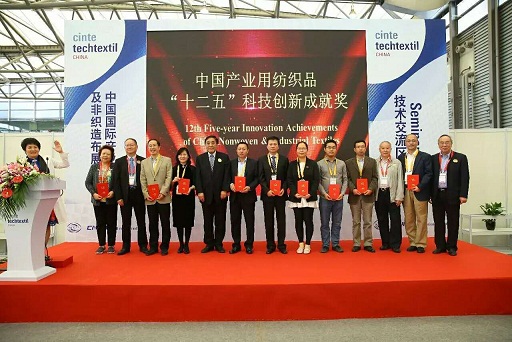 在中国国际产业用纺织品及非织造布展览会(CINTE)开幕式上,中国产业用纺织品行业协会发布中国产业用纺织品行业“十二五”创新成就奖获奖名单,并举行颁奖典礼。中国纺织工业联合会党委书记王天凯、秘书长高勇、中国工程院院士孙晋良、蒋士成等为获奖企业颁奖。评选出的创新产品和技术,协会通过2016年中国国际产业用纺织品及非织造布展览会创新产品展示区和行业媒体进行重点展示和宣传。