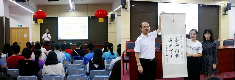 在讲座结束之后,社区学院课外培养中心的助理送上了一副由上海大学书法社的同学为孙教授量身定做的书法作品。孙教授的讲座虽然只有短短的一个半小时,但他却教会了同学们该如何管理我们的人生,相信参与讲座的每位成员都从中受益匪浅。(文/姚煜 图/张弛)