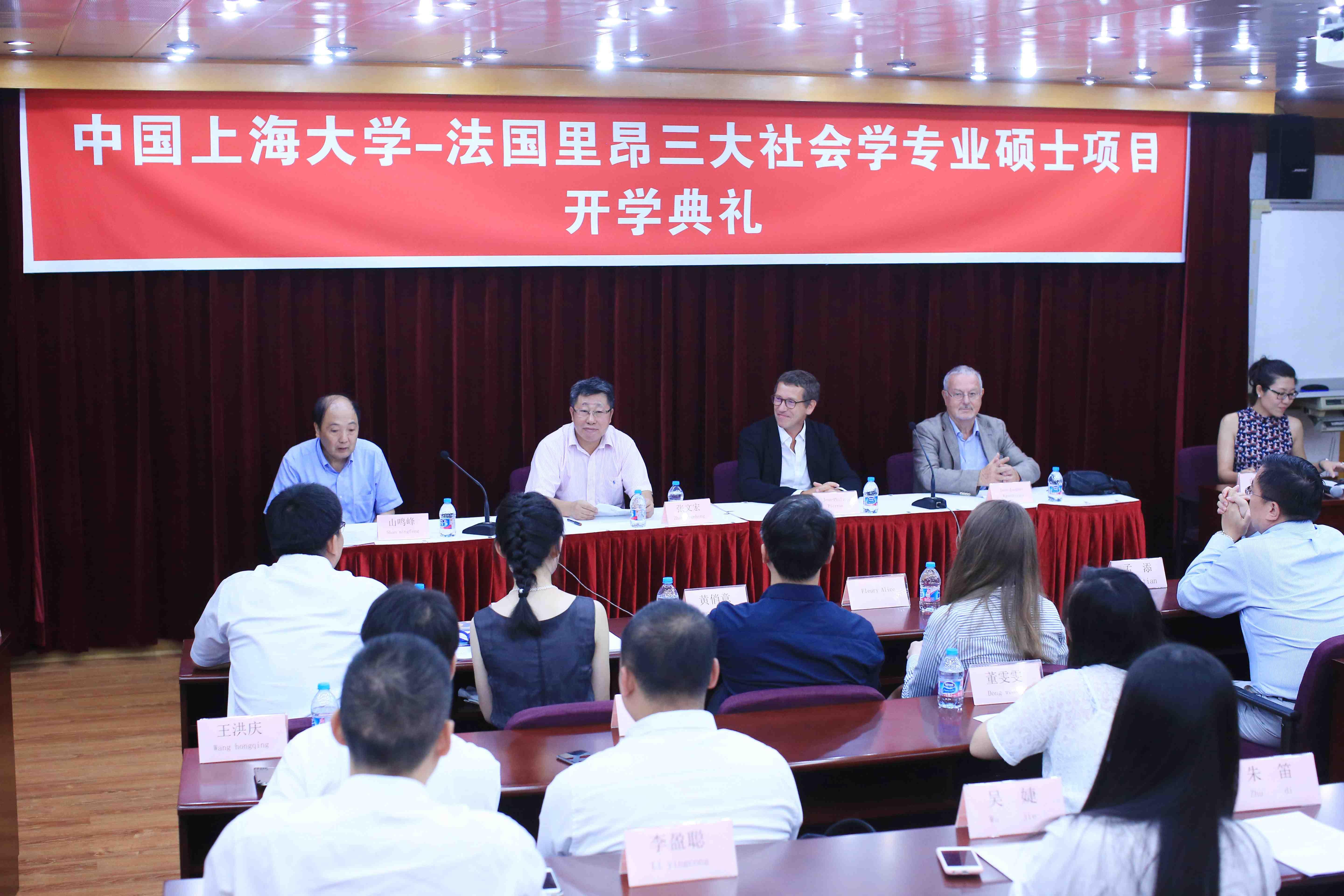 2016年9月2日下午15:30,上海大学与法国里昂三大合作举办的社会学专业硕士项目在延长校区科技楼806室举行开学典礼,上海大学社会学院院长张文宏、里昂三大哲学院院长Jean-Philippe Pierron、法国著名哲学家Jean Jacques Wunenburger、法国驻上海领事馆教育处FLEURY Alice等领导和嘉宾应邀出席,开学典礼由上海大学上海经济管理中心主任山鸣峰主持。