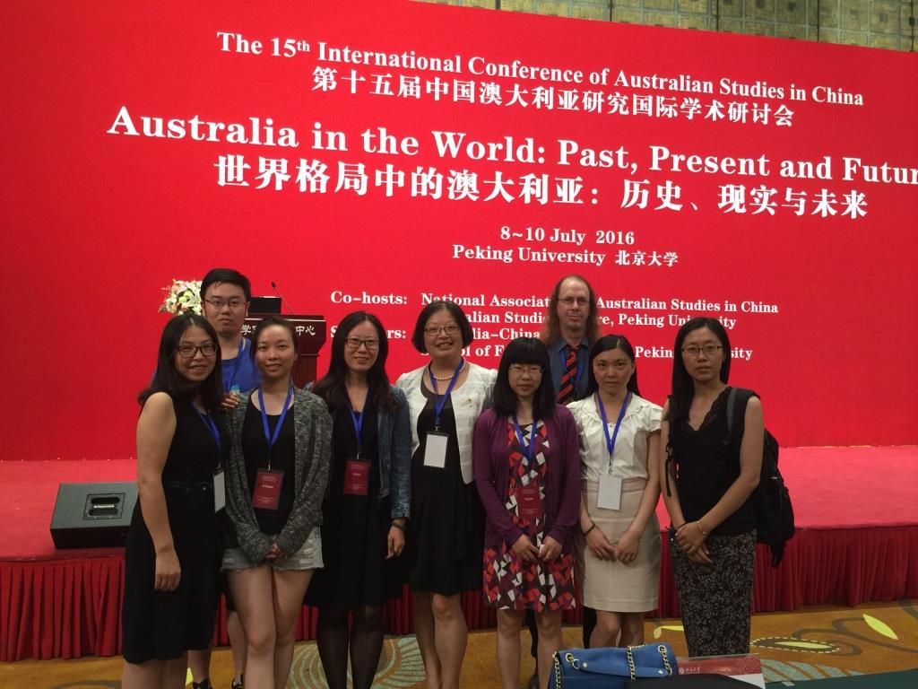 2016年7月8日至10日,第15届中国澳大利亚研究国际学术讨论会在北京大学成功举办。本次会议主题为“世界格局中的澳大利亚:历史、现实与未来”(Australia in theWorld: Past, Present and Future),旨在探讨澳大利亚的发展与变化,以及澳大利亚在世界文明发展历程中的地位与作用,包括其自然环境、社会、文化、政治、历史、民族个性、贸易、经济、国际关系、艺术、教育、语言文学以及新媒体等诸多方面的内容。来自中国、澳大利亚、印度、日本等国近200名专家学者共襄盛会,上海大学澳大利亚研究中心派出强大阵容,胡笑寒副主任领队,携10名师生参加了本次大会。