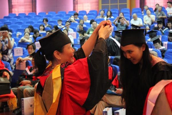 接下来,就是激动人心的学位证书授予仪式。毕业班辅导员汪旭娟老师主持学位授予仪式,宣读了学位授予名单,学院党委书记施雯教授为毕业生拨正流苏,副院长邓志勇教授为毕业生颁发毕业证书和学位证书,副院长苗福光副教授向毕业生赠送学校纪念品《上大八十一景》和学院精心准备的《青春纪念册》。在座师生和亲朋共同见证了这一神圣而喜悦的时刻。庄严的学位授予仪式之后,毕业生们献上了欢快的“Good Time”大合唱,正如歌中所唱“Love me like you do”,全体毕业生们都沉浸在欢乐和喜悦的气氛中。