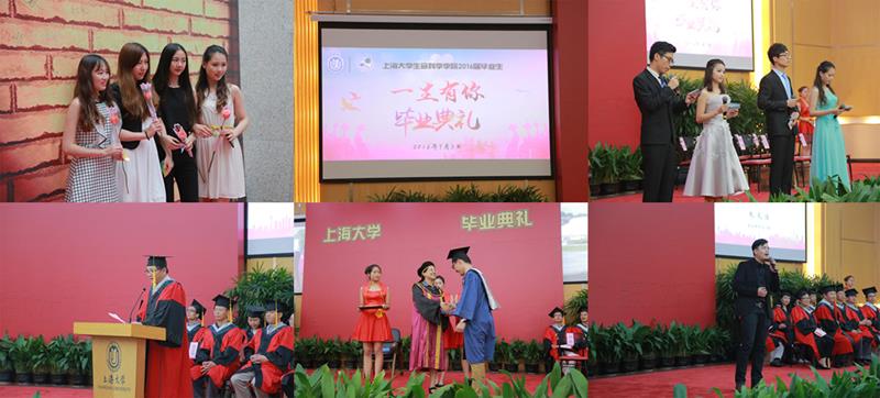 2015年7月3日下午2点30分,生命学院2016届毕业生“一生有你”毕业典礼在图书馆报告厅隆重举行。典礼由2016届毕业研究生李伟豪、陈珍、毕业本科生陈丰和樊嘉连,校党委常委、副校长吴明红教授,生命科学学院党委书记沈忠明副教授、党委副书记邓志瑞副教授、副院长、校学位委员会生命科学分会委员宋任涛教授、陈沁教授、校学位委员会生命科学分会委员高旻天教授、副院长宋红生副教授、生命科学学院罗利教授、高海燕副教授、王锦华副教授、李平副教授、刘战民副教授、肖俊杰副教授等老师出席毕业典礼。2016届毕业生、家长好友以及低年级同学都齐聚一堂,分享毕业时刻。