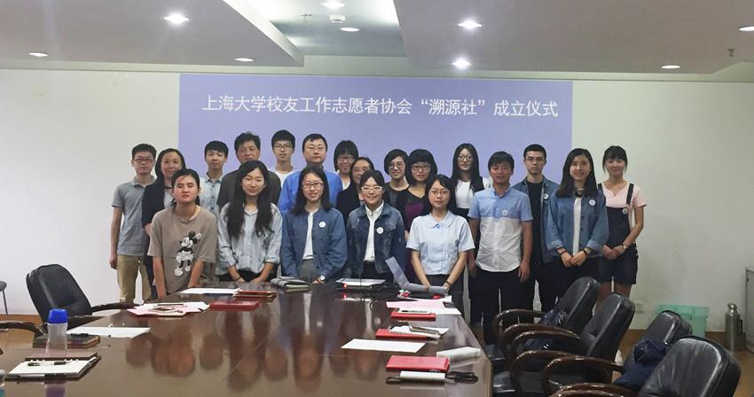 2016年6月12日,上海大学校友工作志愿者协会“溯源”社成立仪式在上海大学行政楼403会议室举行。校对外联络处处长、校友会办公室主任许瑞,副处长、副主任谭婷,办公室副主管庄薪荣,顾问朱建忠以及“溯源”社校外指导老师、上大校友、通用实验科技有限公司部门经理周忠源以及协会全体成员出席了成立仪式。成立仪式由“溯源”社指导老师朱建忠主持。