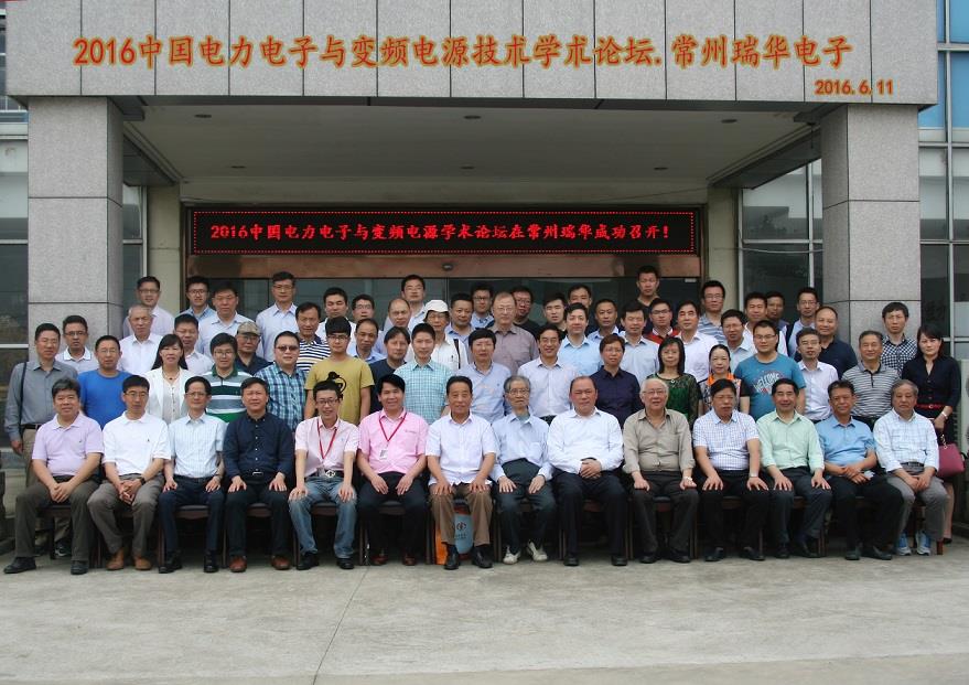 由中国电源学会变频电源与电力传动专业委员会、常州瑞华电力电子器件有限公司和上海大学机电工程与自动化学院联合主办,常州瑞华电力电子器件有限公司承办的“2016'电力电子与变频电源新技术学术论坛”于2016年6月10日~12日在江苏常州瑞华电力电子器件有限公司召开。来自全国各地的专家、学者、工程技术人员和企业界人士约120余人参会。我国电气工程学科奠基人和开拓者之一、浙江大学汪槱生院士到会祝贺;中国电源学会副理事长李占师到会并致贺词;常州市金坛政法委书记刘东升致词;常州瑞华电力电子器件有限公司总经理颜辉致欢迎词;中国电源学会变频电源与电力传动专业委员会主任委员、上海大学阮毅作专业委员会的工作报告;开幕式由中国电源学会变频电源与电力传动专业委员会副主任委员兼秘书长、上海大学陈息坤主持。