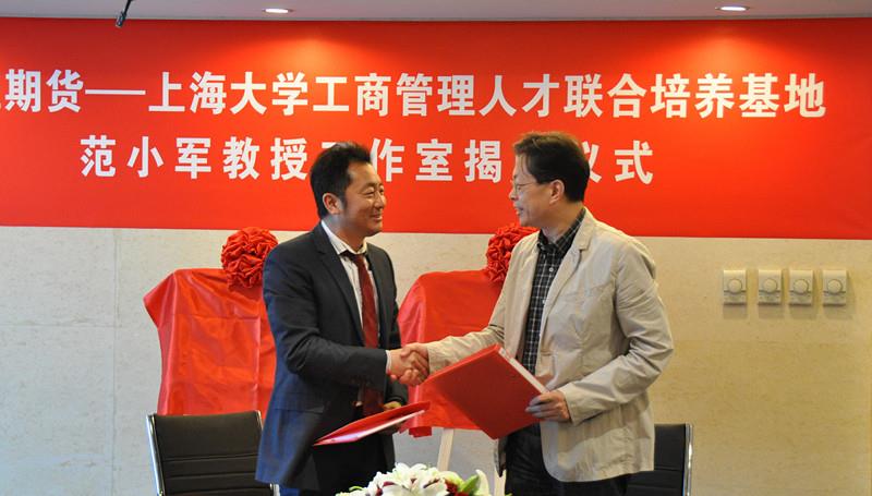 6月3日,上海东证期货有限公司“上海大学工商管理人才联合培养基地”和“范小军教授工作室”揭牌仪式在东证期货39层会议室隆重举行,东证期货总经理卢大印、副总经理唐雷、副总经理兼财务总监沈林、工会主席尹君、首席风险官裘凌、总经理助理许劲等主要领导层悉数出席揭牌仪式,我院尤建新院长、樊春妹书记、工商管理系主任范小军教授、王家宝老师和厉杰老师出席。尤建新院长和卢大印总经理分别代表合作双方进行签约,并为基地和工作室揭牌。