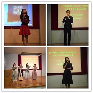为积极宣传贯彻党的十八大精神,建设中华民族共有精神家园的战略任务,弘扬民族优秀文化,进一步加强以爱国主义为核心的民族精神和以改革创新为核心的时代精神教育,以及中华民族优秀文化传统教育和革命传统教育,做好长三角地区“中华经典·中国梦想”大学生中华经典诵读大赛上海大学优秀选手的选拔和推荐工作,5月27日上午,长三角地区“中华经典·中国梦想”大学生中华经典诵读大赛校内选拔活动在校本部行政楼报告厅举行。
