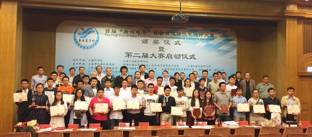 由上海市仪器仪表学会、中国仪器仪表学会嵌入式仪表及系统技术分会、上海仪器仪表研究所主办,上海唐辉电子有限公司、上海大学机电工程与自动化学院承办的首届“唐辉电子”杯中国智能仪器仪表设计大赛颁奖典礼暨第二届大赛开幕仪式于2016年5月18日在上海大学延长校区三教五楼报告厅隆重举行。