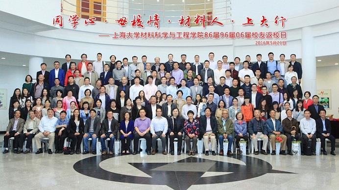 2016年5月21日,“同学心 母校情 材料人 上大行”——上海大学材料科学与工程学院86届96届06届校友返校日活动在宝山校区J楼隆重举行。上海大学校友办主任许瑞、上海大学招毕办副主任汪宏斌、上海大学人事处处长朱明原、上海大学特邀党建组织员陆翠兰、材料科学与工程学院校友分会会长张捷宇、院长董瀚、党委书记周路海、常务副院长王林军、党委副书记席慧霞,上海大学材料学院毕业逢三十年、二十年和十年的校友们以及材料学院师生出席了本次活动。