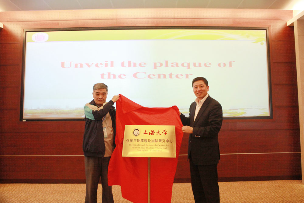 19日上午8:10大会开幕,开幕式由数学系主任王卿文教授主持,上海大学副校长丛玉豪教授代表学校致欢迎辞。丛校长指出,本次会议的召开为上大师生聆听和学习国际前沿学术进展提供了重要的机遇,也为我们近距离感受与会专家学者的严谨治学和科研智慧提供了一次宝贵的机会。接着,丛校长与俄罗斯Petrovskaya科学与艺术研究院外籍院士、第二届中国运筹学会科学技术奖一等奖获得者、香港理工大学讲座教授祁力群教授共同为“上海大学张量与矩阵理论国际研究中心”(International Research Center for Tensor and Matrix Theory of Shanghai University)揭牌。国际线性代数学会前主席、线性代数顶级期刊“Linear algebra and its applications”主编、美国威斯康辛大学麦迪逊分校Richard Brualdi教授,香港理工大学祁力群教授分别作了热情洋溢的讲话。