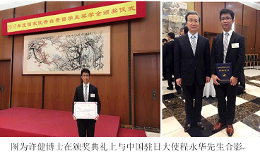 近日,在驻日中国总领事馆(东京)举行的2015年度国家优秀自费留学生奖学金颁奖仪式中,上海大学材料学院电子信息材料系本科和硕士毕业生许健同学作为京都大学的中国留学生代表获此殊荣,为母校上海大学增光添彩。本年度在日本仅有26位留学生获此殊荣。