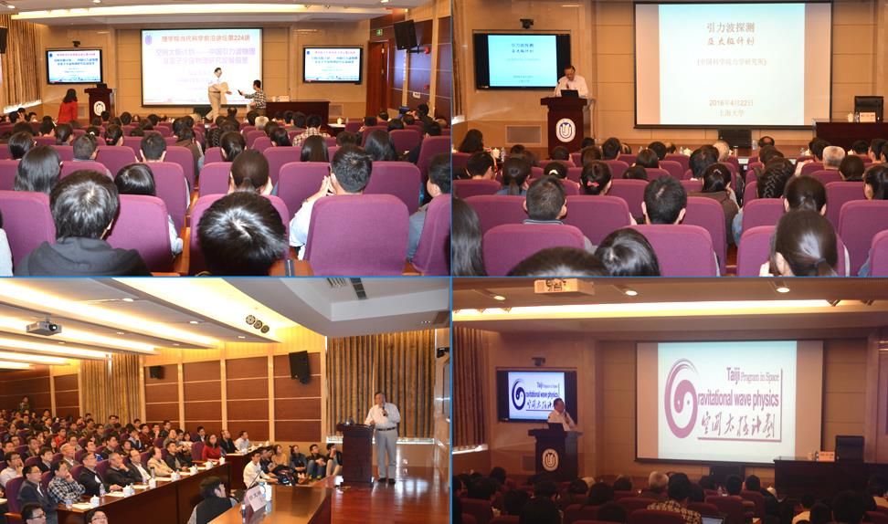 2016年4月22日,应上海大学上海市应用数学和力学研究所的邀请,中科院力学研究所胡文瑞院士在校本部乐乎新楼做了题为“空间太极计划”的学术报告,该报告为理学院“当代科学前沿讲坛”第224讲,理学院副院长胡国辉教授主持这次报告。