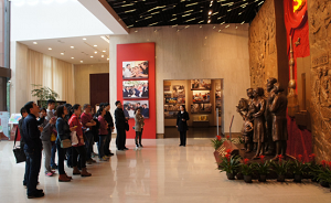 到达目的地,在场馆讲解员的解说引导下,我们首先迈入大厅,瞩目的“凝心聚力雕塑”映入眼帘,肃然起敬。图雕塑造了上海基层优秀党员干部群像,集中反映了改革开放以来上海基层党组织关心百姓冷暖、为群众排忧解难、凝聚社会力量、共同建设和谐社会的生动实践。