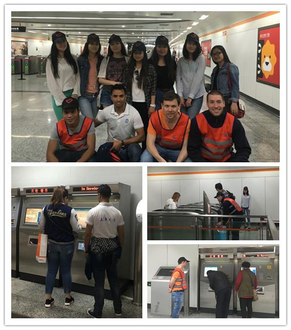 2016年4月17日下午,上海大学国际交流学院留学生联合会的十名留学生志愿者来到地铁7号线上海大学站进行了一次别开生面的志愿者服务活动。本次活动是国交学院留学生志愿者与地铁站的首次合作,为期四周。国交学院留学生志愿者协会每周派出8—10名志愿者,分别在进出站口与售票机前协助站台工作人员进行志愿服务。