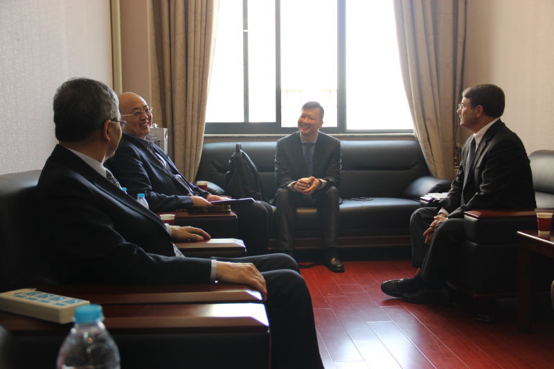 2016年4月19日,上海大学肯纳十周年暨2016年肯纳奖学金颁奖典礼在东区材料B楼520会议室隆重举行。典礼前,我校党委副书记、副校长徐旭会见了肯纳公司代表,双方对学校和企业的合作发展有关问题进行了亲切的会谈。徐旭副书记表示我国的钢铁行业处在阵痛期,需求高品质、高质量的发展,我们的大学也正在快速转型期,大学与行业、企业、社会的互动要多向美国优秀大学学习。中国的大学走向世界一流的途径有多种,上大作为一所综合性的大学,希望以斯坦福大学为标杆,寻找更多的发展机遇。此外,徐旭副书记对肯纳公司多年的支持表示感谢。Clemens先生也认为未来企业与大学的合作可以使得转型变得顺利,大学有很多好的创新性思维和学术成果可以和制造业有机结合起来,产学研是一种非常好的结合方式,举例了一些美国的大学进行探讨,并表达了与我校进一步合作的愿景。