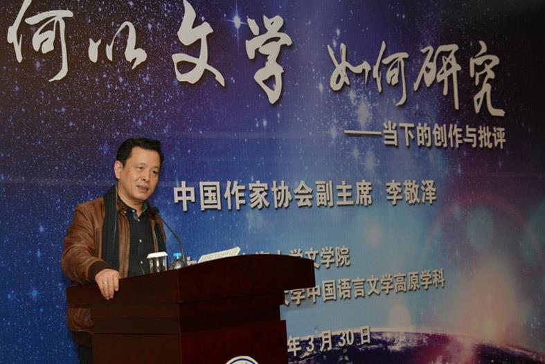 李敬泽先生以渊博的学识、低沉深邃的话语,张弛有度、幽默风趣地分享了其对当代批评文学的解读。讲座上,李敬泽主要从“何以文学”以及“如何研究”两方面展开讨论。关于“何以文学?如何研究?”这一问题,李敬泽也一直心存疑问,希望借此机会和在座的师生一起寻求问题的答案。李敬泽提到,对于当下中国正在运行的文学,文学的形式和意义已发生了重要的变化,“文学何以是文学”是一个迫切需要思考的问题。随后,李敬泽深入浅出地分析了现代小说、散文、诗歌等文学体裁所发生的根本性的变化,从多个角度阐释了文学所面临着的考验和挑战。例如,在网络飞速发展的当今时代,普通大众更多地是通过微博、微信、论坛来抒发感情,这些网络平台为人们提供了广阔的抒写场域,并呈现出生机勃勃地发展趋势,对比而言,传统的抒情场域就变得越来越狭小。因此,我们必须重新审视“何以是文学”这一问题。