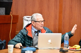 Hoffman教授是上海大学最早的海外顾问教授之一,环化学院陈捷教授曾师从Hoffman教授,学成归国后与Hoffman教授一直保持良好的合作关系,Hoffman定期应邀来访并对学院相关的科研工作进行指导。在此次学术报告会上,Hoffman教授结合RAFT聚合反应技术分析了智能高分子聚合物在药物缓释和诊断中的应用,并对智能高分子聚合物的未来进行了展望。最后,在讨论交流环节,拥有50多年科研经验的Hoffman教授用他渊博的知识回答了在场老师和同学的提问,同时结合自己的成长经历和感受给学生提了宝贵的建议,同学们受益匪浅。