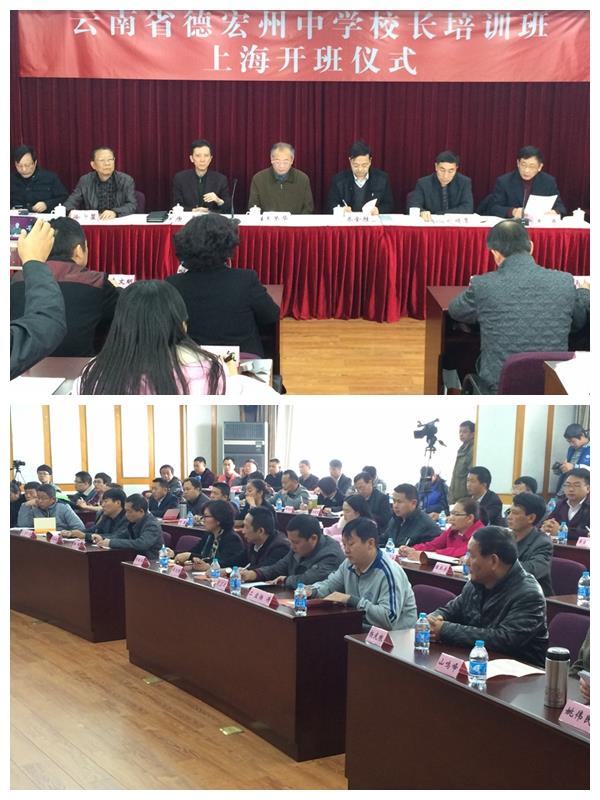 2016年3月7日上午9时,云南省德宏傣族景颇族自治州中学校长培训班在我校经管中心举办开班仪式。上海市十届政协副主席、上海科技成果转化促进会会长王荣华、上海市政协副秘书长齐全胜、上海大学副校长唐豪、云南省德宏傣族景颇族自治州政府副秘书长刘顺厚等领导出席开班仪式。