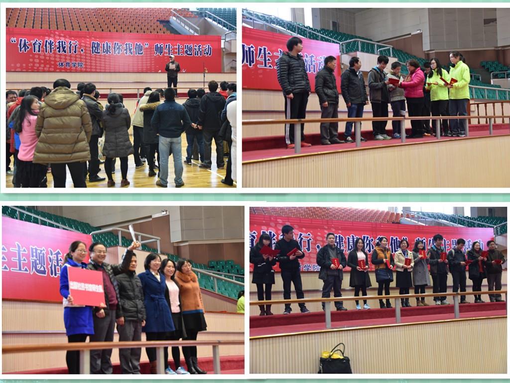 持续了20天由体育学院主办的 “上海大学‘体育伴我行,健康你我他’师生运动主题活动”于2016年1月8日下午在校本部体育馆圆满落幕,体育学院院长邵斌主持了闭幕暨颁奖仪式,此次活动得到24个机关部处和学院300多名师生的大力支持和积极参与,师生们同台竞技,在强身健体中增进了友谊,达到了促进学校教职工及学生参与体育运动热情的目的。