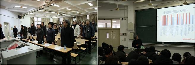 2016年1月12日下午,美术学院第六届教代会第七届工代会第三次会议暨2015年度全体教职工大会在上海大学宝山校区FJ306召开,美术学院教职员工100余人出席了大会。大会由院党委副书记王岭山主持。