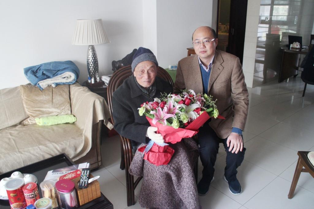 2015年12月30日,校党委副书记、副校长徐旭和离退休工作处工作人员一同看望了上海大学第一位百瑞老人——曹福祥老师。