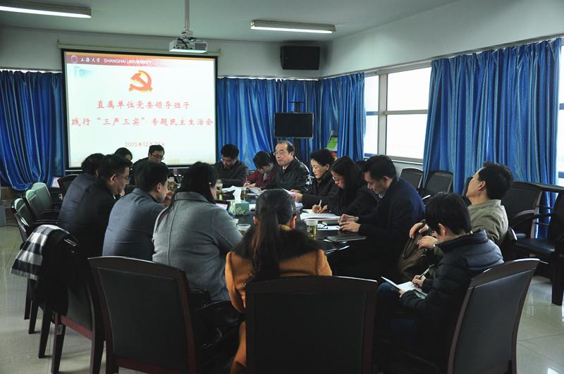 12月29日上午,直属单位党委领导班子在校本部D楼直属单位教工之家召开践行“三严三实”专题民主生活会。校党委副书记、副校长李友梅,校党委组织部副部长张洁等出席了会议。各直属单位党政负责人、党支部书记代表、学校党代会代表、民主党派代表、教授代表及群众团体负责人代表列席了会议。会议由直属单位党委书记陈志宏主持。