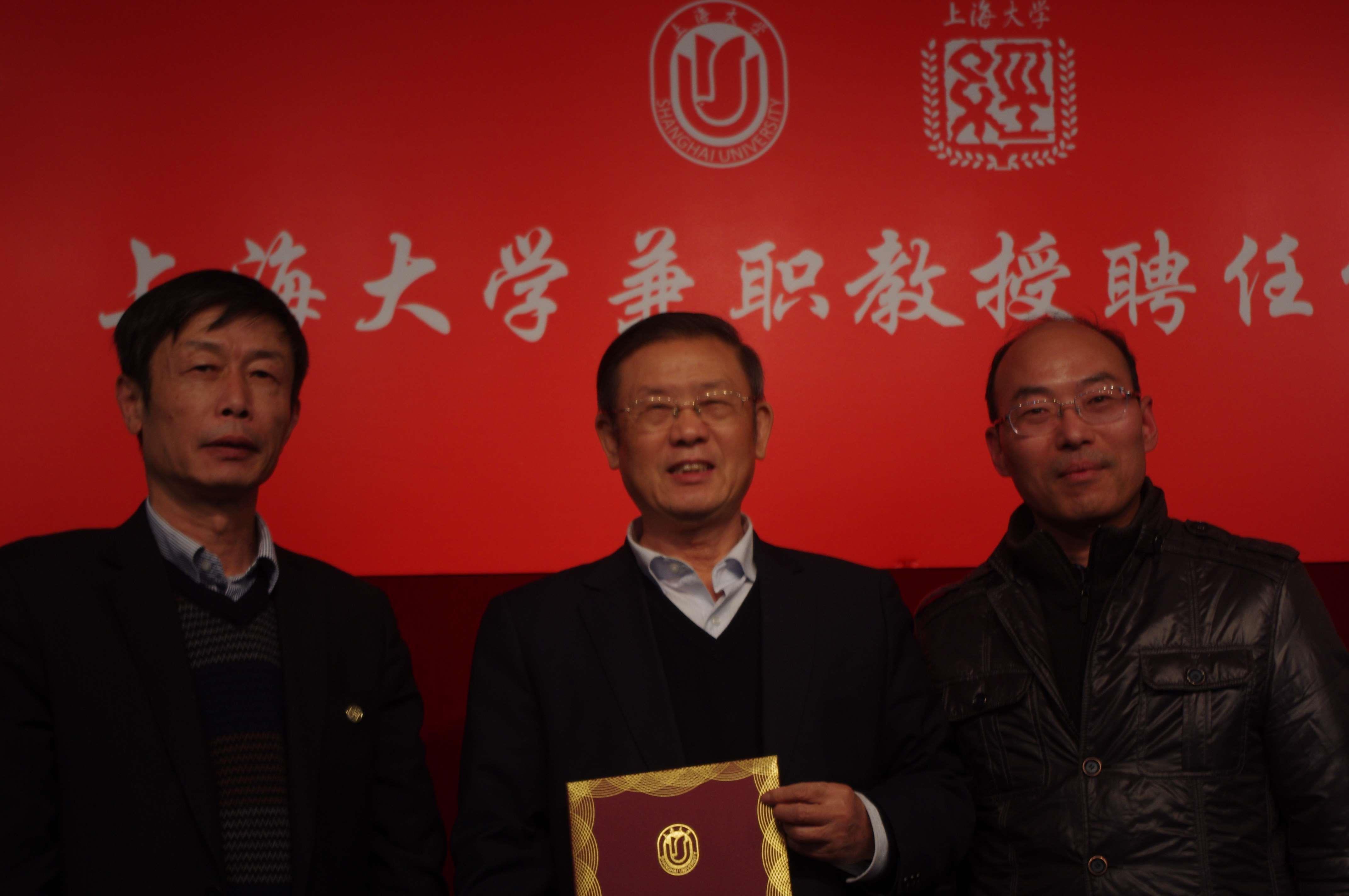 第一环节是吕政研究员的受聘仪式。沈瑶教授首先对吕政研究员做了简短的介绍,随后,朱明原处长为吕政先生颁发了上海大学兼职教授聘书。