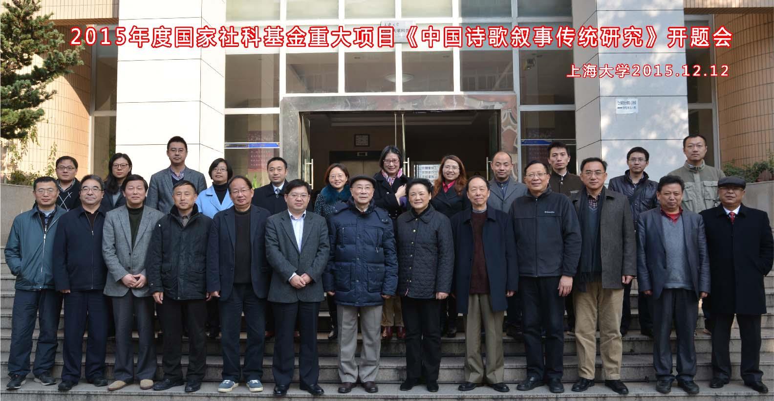 2015年12月12日,由上海大学文学院终身教授董乃斌领衔主持的国家社会科学基金重大项目“中国诗歌叙事传统”开题报告会在上海大学延长校区科技楼召开。来自中国社会科学院、中国人民大学、华东师大、上海师大、上海外国语大学、江西师大、湖南师大、云南大学、西华师大等九所高校与研究机构的二十余位学者出席会议。