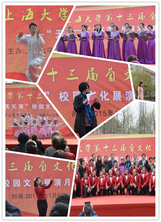 演出节目丰富多彩:有来自理学院的邵奋芬老师充满感情的朗诵《幸福像花儿一样》;有生命学院任萍萍老师带来的一首让人百听不厌的经典老歌《甜蜜蜜》;为了纪念中国人民抗日战争暨世界反法西斯战胜胜利70周年,我校教工合唱团精心准备了《共筑中国梦》和苏联经典歌曲《山楂树》。演出还穿插了机自学院同学们表演的街舞《shake it &revolver》,教职工子女小朋友表演的舞蹈《我有一双小小手》,社区时装队带来的精彩时装秀《中国大舞台》以及嘉定真新合唱团带来的经典曲目《阳光路上》、《太行山上》,使得整场演出高潮迭起,掌声不断。
