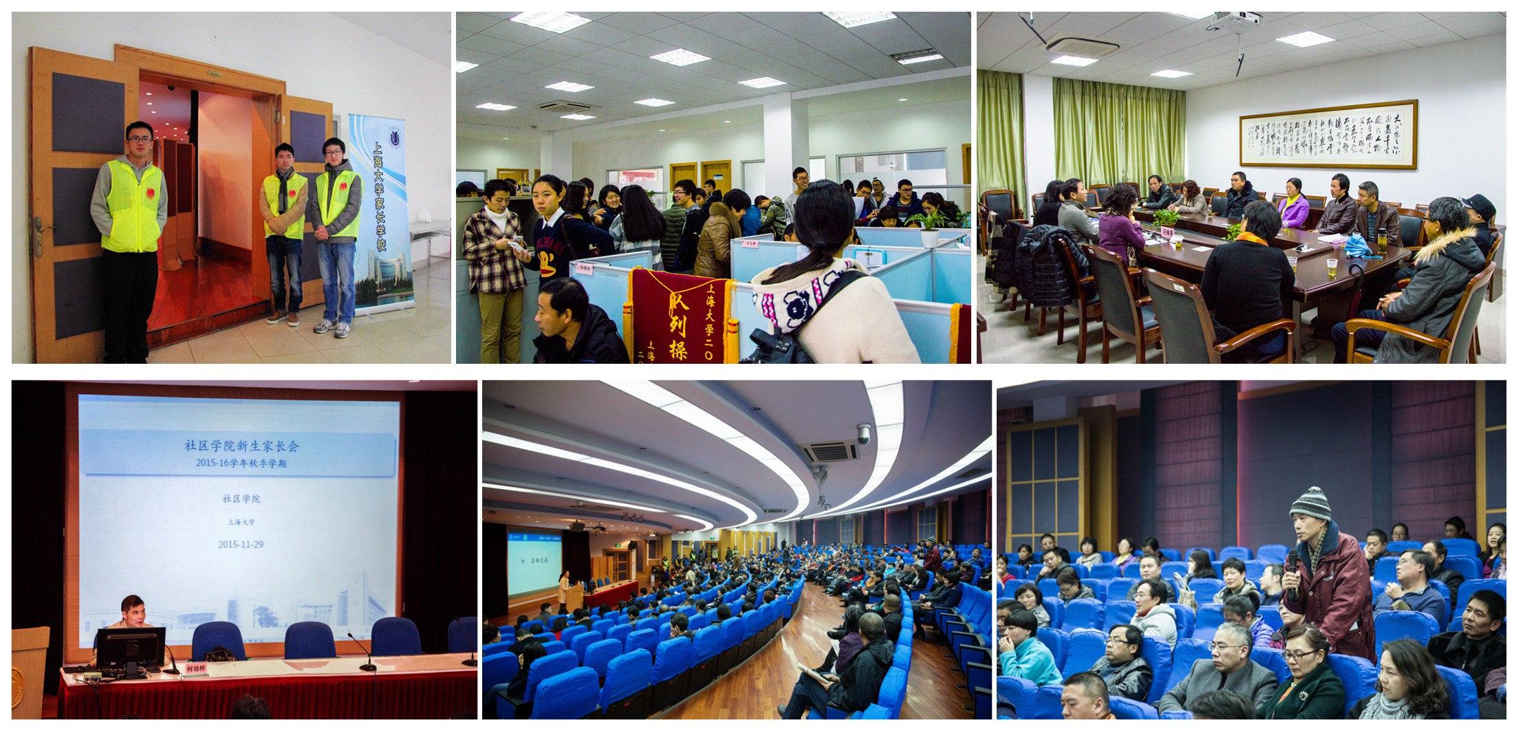 13:00,上海大学家长学校(社区学院专场)在校本部J202举行,上海大学学工办主任胡大伟、招毕办副主任傅新华、教务处副处长顾晓英、材料学院副院长、社区学院导师尹静波应邀出席了本次活动并发言,社区学院党政领导和全体辅导员全部到场,与受邀而来的近400名2015级社区学院学生家长一起分享学生们的成长与收获。