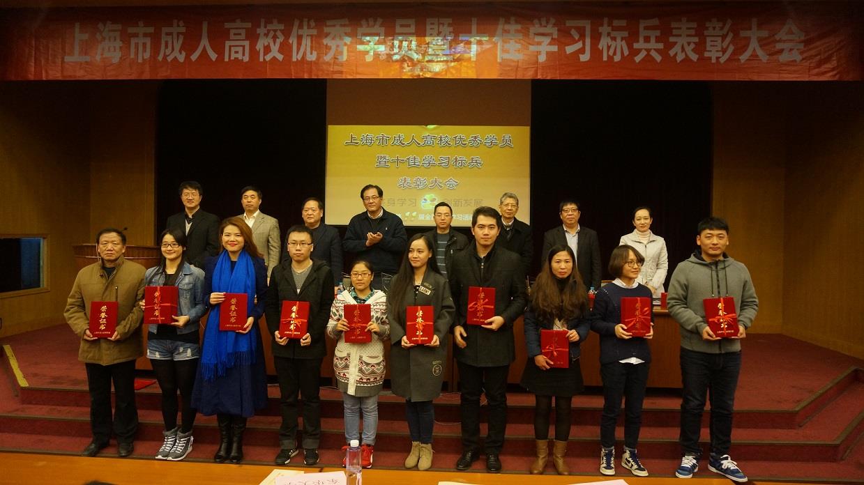 2015年11月30日,上海市成人高校优秀学员暨十佳学习标兵表彰大会在上海大学延长校区召开。本次活动作为上海市第十一届全民终身学习周活动之一,由上海市成人教育协会院校教育专业委员会组织,表彰了以上海大学潘斌为代表的10名同学为2015年上海市成人高校“十佳学习标兵”,复旦大学王春灵等179名同学为2015年上海市成人高校“优秀学员”。上海市成人教育协会邹益副会长、上海市教委高教处赵坚副处长、上海市教委学生处丁良副处长及来自53个院校的一百多位师生参加了表彰活动。