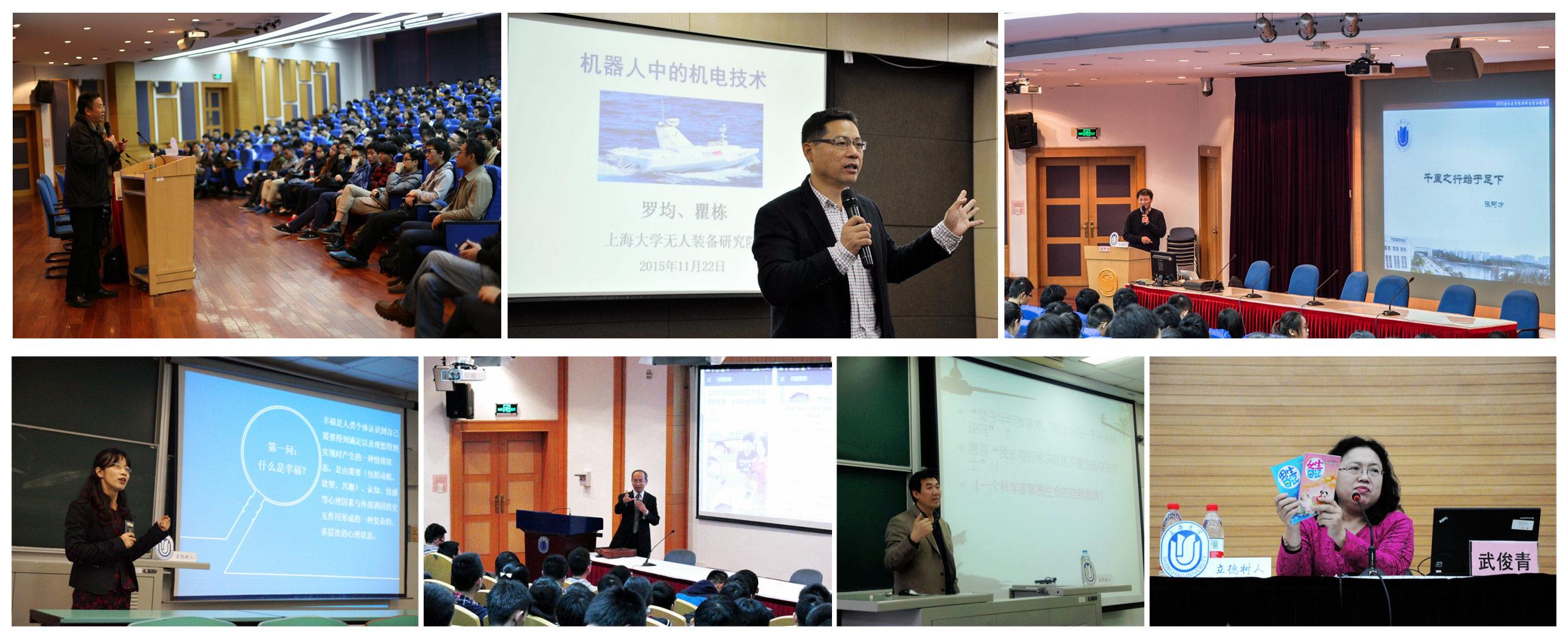 2015年11月22日,即上海大学2015-2016冬季学期首日教育当天,上海大学“立德树人”讲坛正式启动,首批推出了“材”富人生、创新之路、工程之奇、幸福之旅、创业之法、成长之法和健康之路七个不同专题的系列讲座,邀请到上海大学学科建设委员会副主任、先进凝固技术中心主任翟启杰教授,钱伟长学院常务副院长张阿方教授,机自学院副院长罗均教授,社区学院副院长陈秋玲教授,中国首位问题管理专家、危机与问题管理研究中心主任、管理学院教授孙继伟,中国新闻传播教育史学会副会长、上海电影学院李建新教授,上海市政协委员、复旦大学博士生导师武俊青教授等七位各个领域的资深教授,与上大青年学子进行了互动交流与分享,每一场不同主题的讲座都让同学们领略到了大师的风采与韬略。